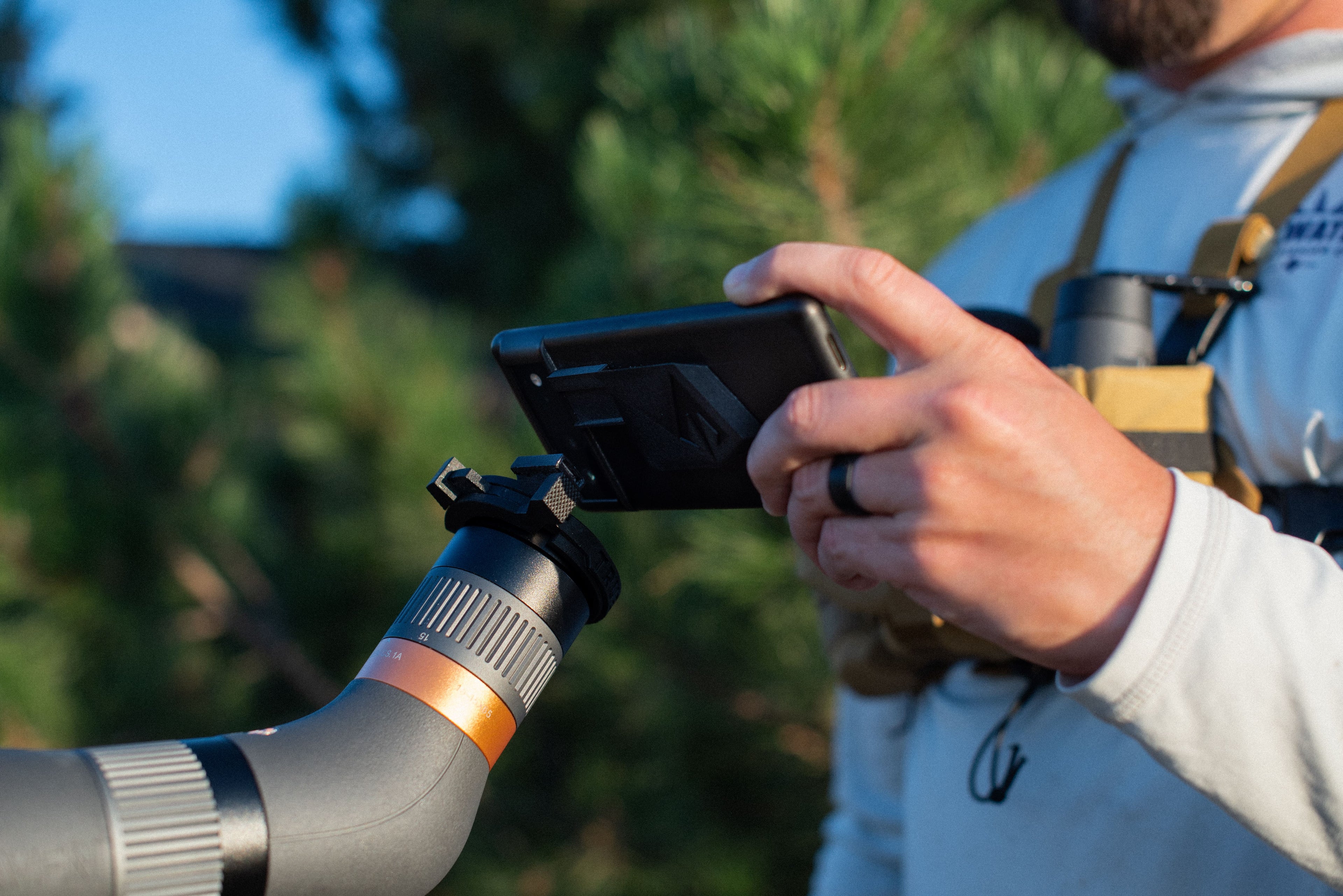 Our adapter system connects your smartphone to binoculars, spotting scopes, tripods or other optics so you can capture quality, long range photos and videos through the lens.