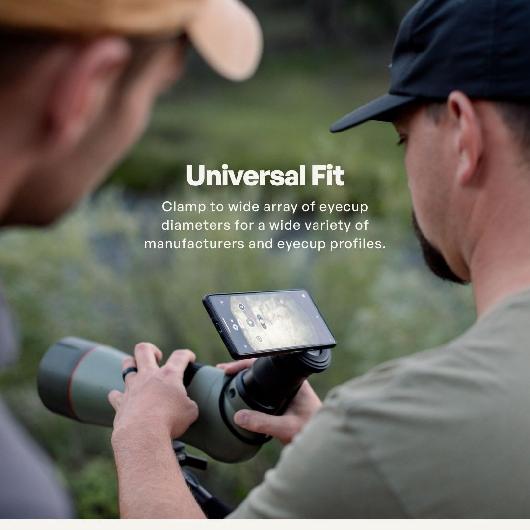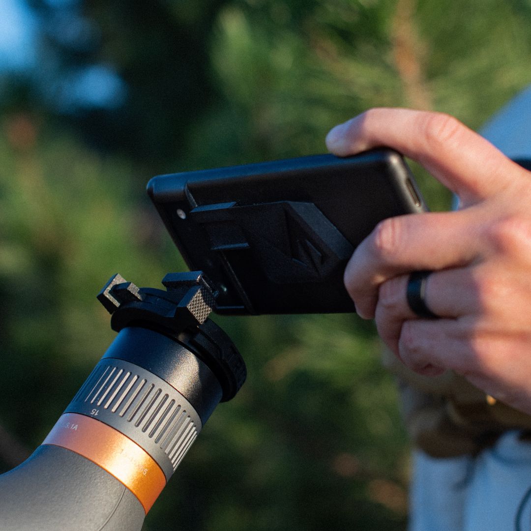 Our adapter system connects your smartphone to binoculars, spotting scopes, tripods or other optics so you can capture quality, long range photos and videos through the lens.